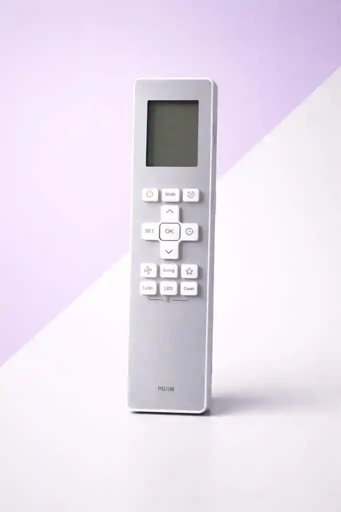 Control remoto compatible con aire acondicionado Olimpo, modelo RG108. Ideal como reemplazo cuando el control original se daña, se pierde o presenta fallas. Diseño ergonómico, botones suaves y pantalla amplia para una visualización clara de funciones. Permite manejar cómodamente las configuraciones de climatización. Funciones principales: Encendido / Apagado Modo (Frío, Ventilación, Auto según equipo) Ajuste de temperatura Control de ventilador Función Swing Turbo LED Clean Características: Compatible con equipos Olimpo Respuesta rápida y precisa Diseño liviano y cómodo Fácil uso Ideal para hogares, oficinas, consultorios y espacios comerciales