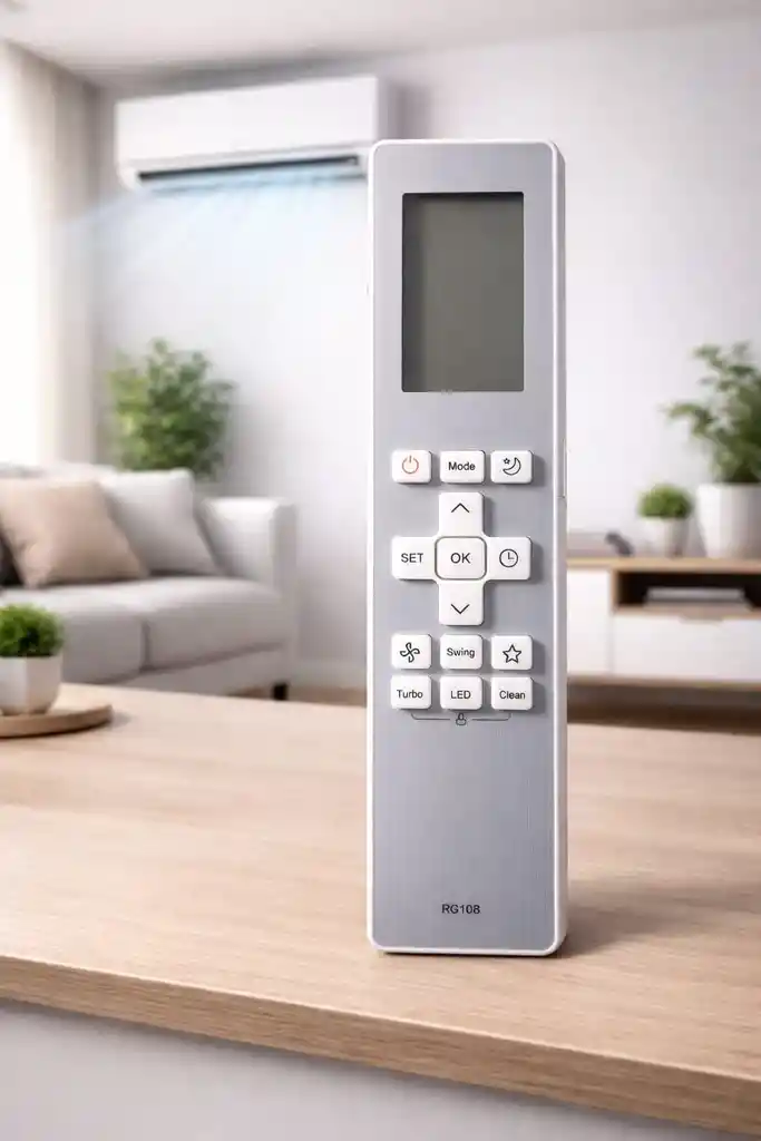 Control remoto compatible con aire acondicionado Olimpo, modelo RG108. Ideal como reemplazo cuando el control original se daña, se pierde o presenta fallas. Diseño ergonómico, botones suaves y pantalla amplia para una visualización clara de funciones. Permite manejar cómodamente las configuraciones de climatización. Funciones principales: Encendido / Apagado Modo (Frío, Ventilación, Auto según equipo) Ajuste de temperatura Control de ventilador Función Swing Turbo LED Clean Características: Compatible con equipos Olimpo Respuesta rápida y precisa Diseño liviano y cómodo Fácil uso Ideal para hogares, oficinas, consultorios y espacios comerciales.
