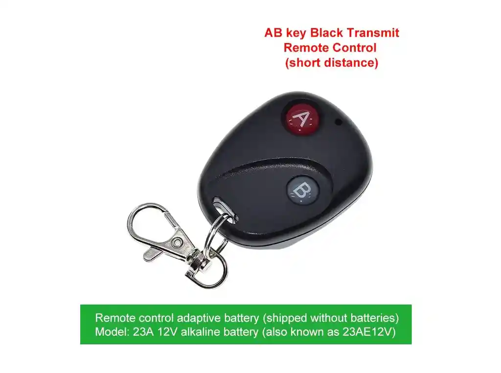 Control remoto Universal. Compatible con frecuencias de 433Mhz. Pila no incluida. Pila necesaria: 23A Alcance sin muro: 30mt Alcance entre muros: 15mt LA COMPRA INCLUYE: 1x CONTROL REMOTO 433MHz NEGRO 15mt