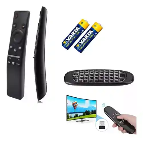 REMOTO COMPATIBLE CON SAMSUNG + MAGIC AIR MOUSE Control remoto genérico compatible con Samsung Incluye baterías, listo para usar Diseño ergonómico y resistente Fácil configuración y excelente alcance Control Magic Air Mouse con teclado y receptor USB Controla tu Smart TV, PC, Android TV Box y más Función de puntero aéreo para una navegación intuitiva Teclado completo para escribir cómodamente Conexión rápida y estable con receptor USB ¡Llévate este combo ideal para disfrutar al máximo tu entretenimiento! Consulta disponibilidad y ordénalo hoy mismo.