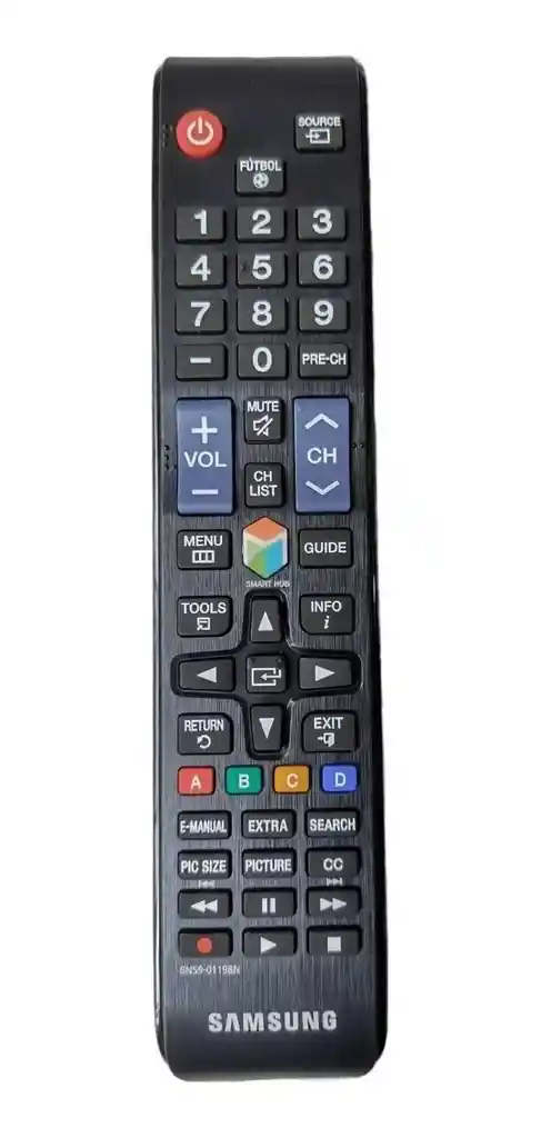 Control Samsung Smart Tv Disfruta de la calidad y precisión de un control remoto original, diseñado para maximizar tu experiencia con tu Samsung Smart TV. DESCRIPCIÓN El Control Remoto Original para Samsung Smart TV BN59-01198N es el accesorio ideal para mantener el control completo de tu televisor Samsung. Diseñado específicamente para ofrecer compatibilidad total con modelos seleccionados, este mando garantiza un funcionamiento preciso y sin interrupciones. Su diseño ergonómico y resistente lo hace cómodo de usar, mientras que los botones de acceso directo a aplicaciones Smart TV optimizan la experiencia de entretenimiento. CARACTERÍSTICAS Modelo original Samsung BN59-01198N. Compatible con Smart TVs Samsung seleccionados. Configuración simple y lista para usar. Botones de acceso rápido a funciones Smart TV. Diseño ergonómico y fácil de manejar. Material de alta resistencia para mayor durabilidad. Alcance de señal óptimo y confiable. Garantía de compatibilidad con televisores Samsung. Diseño compacto y liviano. Ideal como reemplazo del mando original. 1. UN32H4303AKXZL 2. UN32H5500AKXZL 3. UN40H4203AKXZL 4. UN40H5103AKXZL 5. UN40H5303AKXZL 6. UN40H5500AKXZL 7. UN40H6203AKXZL 8. UN40H6400AKXZL 9. UN46H5303AKXZL 10. UN46H6203AKXZL 11. UN48H4203AKXZL 12. UN48H5500AKXZL 13. UN48H6300AKXZL 14. UN48H6400AKXZL 15. UN48H6800AKXZL 16. UN50H5303AKXZL 17. UN55H6400AKXZL 18. UN55H6800AKXZL 19. UN58H5203AKXZL 20. UN60H6300AKXZL 21. UN60H6400AKXZL 22. UN65H6400AKXZL Medidas Aprox. 23 x 4.8 x 2 cm QUE INCLUYE LA COMPRA x1 Control Samsung