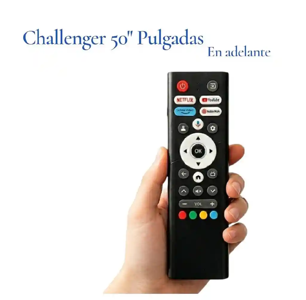 Disfruta de la comodidad y el control total con el Control Remoto para TV Challenger, compatible con televisores de 50" pulgadas en adelante. Diseñado para ofrecer acceso rápido a tus aplicaciones favoritas, este control cuenta con botones dedicados para Netflix, YouTube, Prime Video y más, para una navegación rápida y sencilla. Su diseño ergonómico asegura un agarre cómodo mientras disfrutas de tu contenido en pantalla grande. Perfecto para controlar tu televisor sin complicaciones.