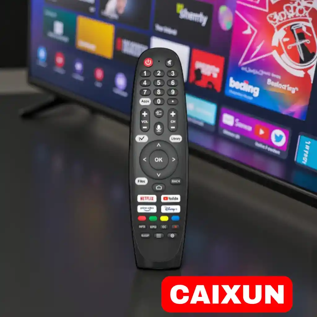 Características principales: Compatible con televisores Caixun Smart TV y otros modelos universales. Botones de acceso directo a tus apps favoritas: ✔ Netflix ✔ YouTube ✔ Prime Video ✔ Disney+ Botón de micrófono (si el televisor soporta función de voz). Controles completos: volumen, canales, menú, archivos, biblioteca, info, sleep, ajustes y más. Diseño ergonómico, resistente y con excelente respuesta táctil. No requiere programación en la mayoría de TVs Caixun (listo para usar). 📦 Ideal para: Reemplazar controles extraviados o dañados. Mejorar la experiencia de navegación y streaming. Usuarios que buscan rapidez y comodidad en su Smart TV. Haz tu experiencia más práctica con este Control Remoto Universal para TV Caixun. ¡Listo para conectar y disfrutar!