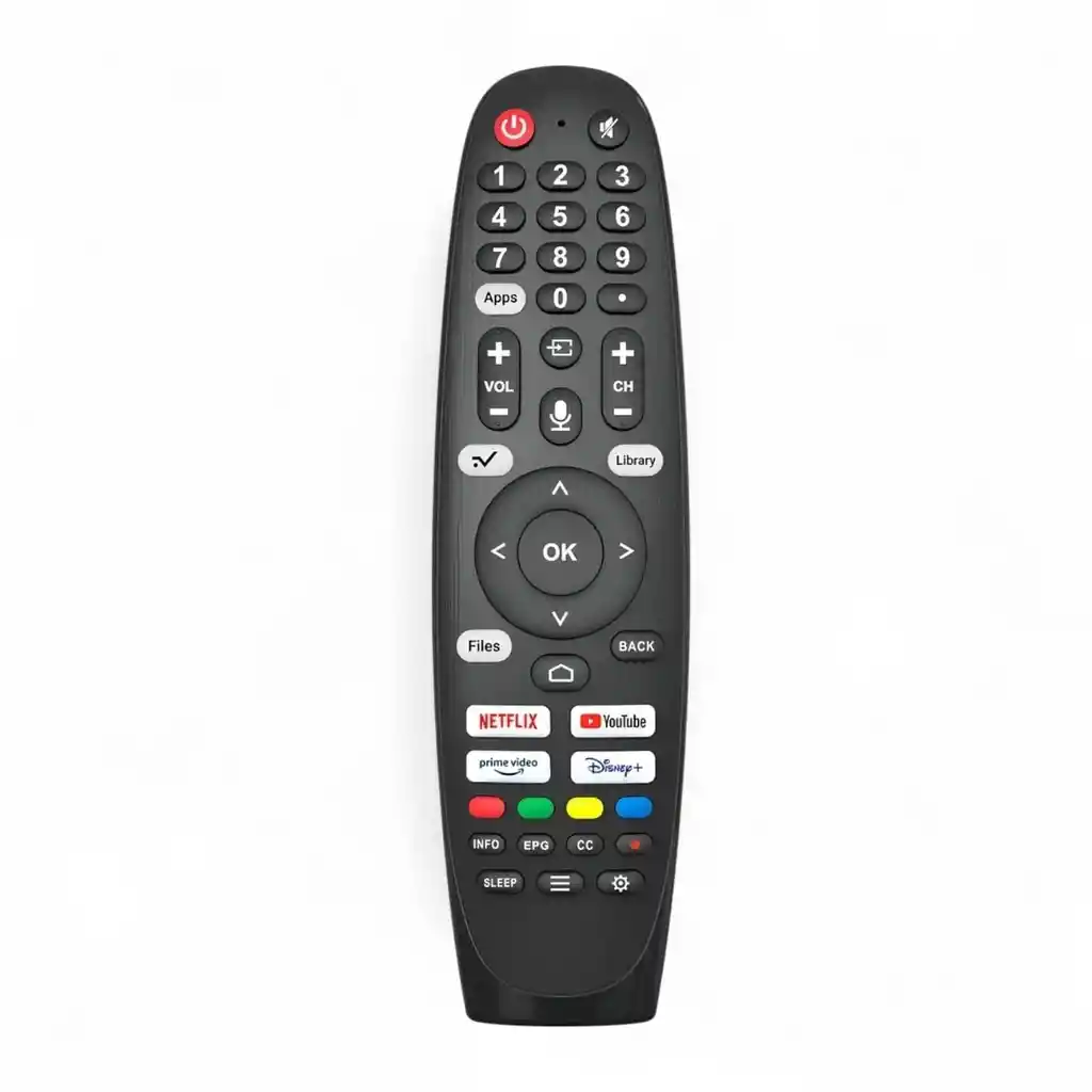 Características principales: Compatible con televisores Caixun Smart TV y otros modelos universales. Botones de acceso directo a tus apps favoritas: ✔ Netflix ✔ YouTube ✔ Prime Video ✔ Disney+ Botón de micrófono (si el televisor soporta función de voz). Controles completos: volumen, canales, menú, archivos, biblioteca, info, sleep, ajustes y más. Diseño ergonómico, resistente y con excelente respuesta táctil. No requiere programación en la mayoría de TVs Caixun (listo para usar). 📦 Ideal para: Reemplazar controles extraviados o dañados. Mejorar la experiencia de navegación y streaming. Usuarios que buscan rapidez y comodidad en su Smart TV. Haz tu experiencia más práctica con este Control Remoto Universal para TV Caixun. ¡Listo para conectar y disfrutar!