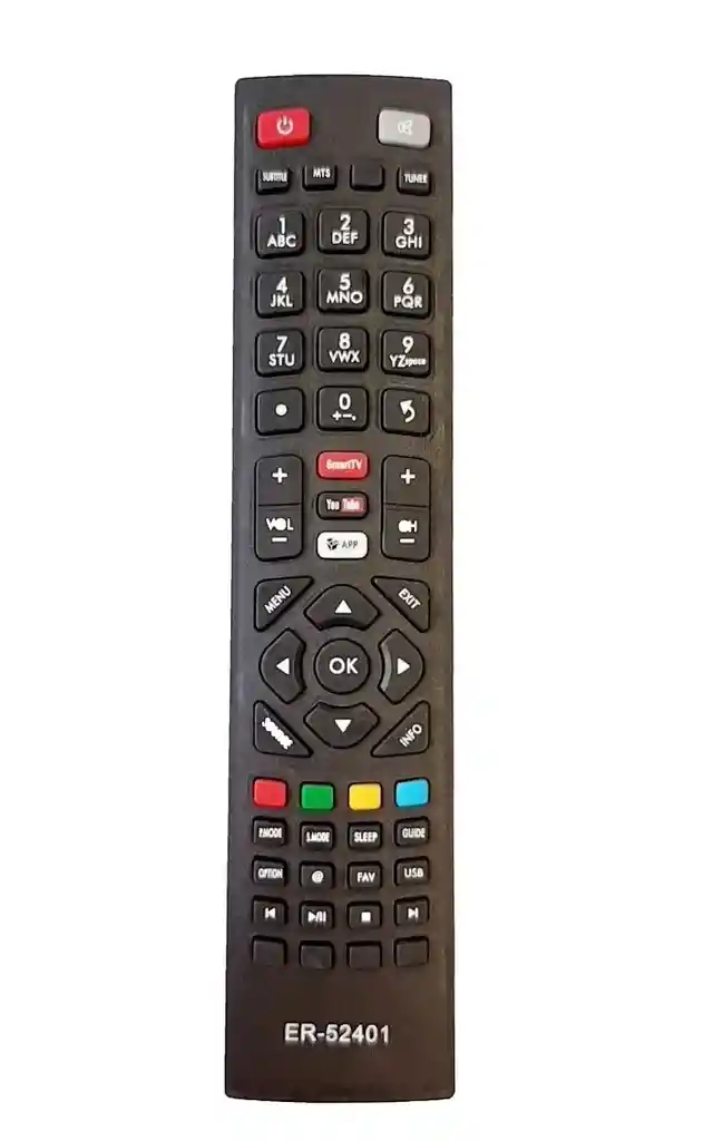 -Control nuevo y genérico de excelente calidad -Material Plástico -Producto 100% funcional. -Medida del control: 12 de Largo x 4.5 de ancho. Control Remoto Tv COMPATIBLE PARA LAS MARCAS Challenger Hyundai Smart