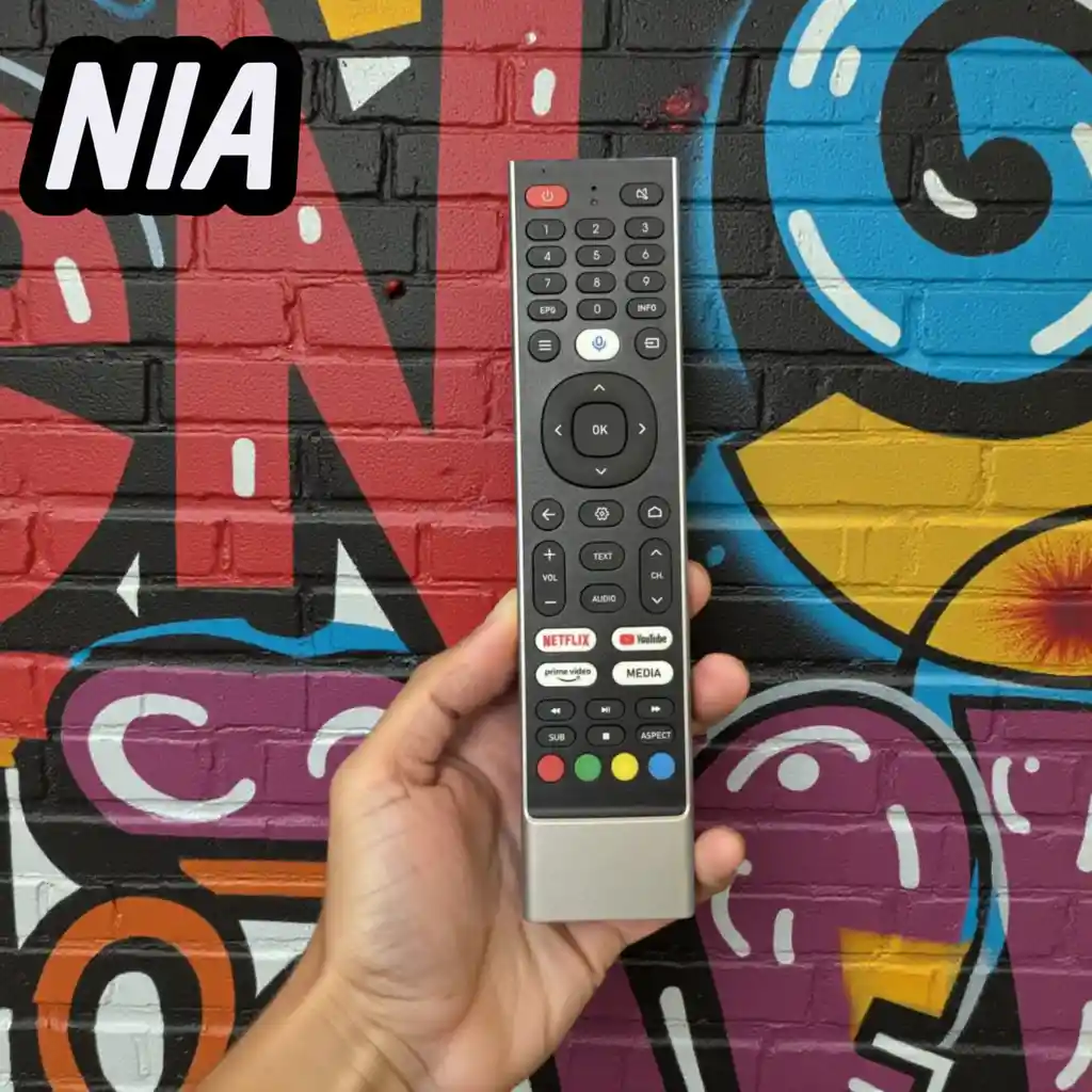 Control remoto universal compatible con TV NIA, referencia N2263, ideal como reemplazo o como control adicional. Ofrece una navegación rápida y fluida gracias a su diseño ergonómico y sus accesos directos a Netflix, Prime Video, YouTube y Media, facilitando el uso de tu televisor. ✔ Compatible con TV NIA – Ref. N2263 ✔ Accesos directos a apps de streaming ✔ Botones sensibles y de excelente respuesta ✔ Material resistente y cómodo al tacto ✔ Fácil instalación: solo colocar las baterías Perfecto para quienes buscan un control práctico, confiable y de excelente calidad. Funciona con pilas (no incluidas).