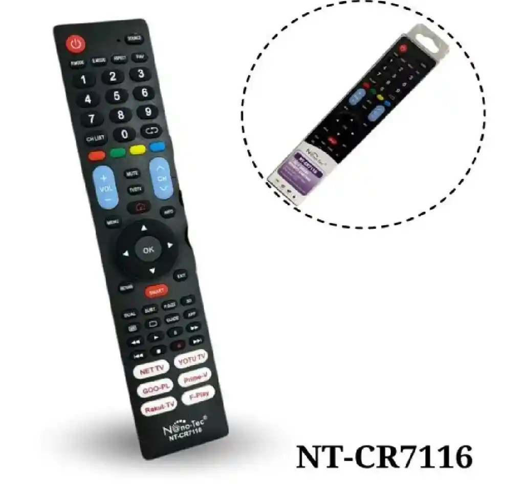 Control Remoto Universal Nanotec 7 en 1 – Modelo NT-CR7116 El Control Remoto Universal Nanotec 7 en 1 es la solución práctica y moderna para simplificar el manejo de tus dispositivos. Con un diseño ergonómico, delgado y un acabado contemporáneo, este control combina estilo y funcionalidad. Compatible con una amplia gama de televisores, cuenta con memoria de códigos actualizados y una función de aprendizaje que permite programarlo fácilmente. Es ideal para sustituir múltiples controles remotos, ya que es compatible con las principales marcas del mercado como Samsung, LG, Sony, Panasonic, Philips, Sharp y Toshiba. Características principales: Diseño moderno y ergonómico para un uso cómodo. Función 7 en 1: controla hasta siete dispositivos distintos. Memoria inteligente de códigos actualizados. Función de aprendizaje para adaptar funciones personalizadas. Alta compatibilidad con marcas reconocidas. Modelo: NT-CR7116 Marca: Nanotec Simplifica tu entretenimiento con un solo control remoto que lo hace todo.Control Remoto Universal Nanotec 7 en 1 – Modelo NT-CR7116 El Control Remoto Universal Nanotec 7 en 1 es la solución práctica y moderna para simplificar el manejo de tus dispositivos. Con un diseño ergonómico, delgado y un acabado contemporáneo, este control combina estilo y funcionalidad. Compatible con una amplia gama de televisores, cuenta con memoria de códigos actualizados y una función de aprendizaje que permite programarlo fácilmente. Es ideal para sustituir múltiples controles remotos, ya que es compatible con las principales marcas del mercado como Samsung, LG, Sony, Panasonic, Philips, Sharp y Toshiba. Características principales: Diseño moderno y ergonómico para un uso cómodo. Función 7 en 1: controla hasta siete dispositivos distintos. Memoria inteligente de códigos actualizados. Función de aprendizaje para adaptar funciones personalizadas. Alta compatibilidad con marcas reconocidas. Modelo: NT-CR7116 Marca: Nanotec Simplifica tu entretenimiento con un solo control remoto que lo hace todo.