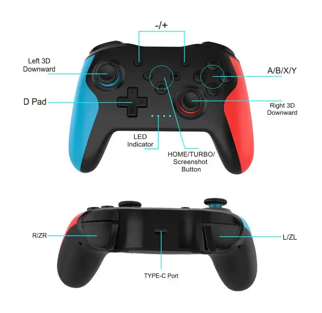 Controlador inalámbrico NS009S BT para Nintendo Switch Pro PC PS3 TV Box Joystick doble vibración NFC Gamepad profesional sin retrasos Media función NS009S, función completa NS009NNS, MG25Z es un controlador multifunción (preste atención a la distinción antes de realizar el pedido) *100% de inspección antes del envío (versión global original) *Tiempo de espera 50 días cuando está completamente cargado *Modo privado con derecho de padres * Sensación de vibración dual Super HD, sensación de sustitución más real *Control preciso, excelente sensación en la mano. * Conexión BT 4.0, distancia de transmisión de 8 metros, la transmisión de señal de alta velocidad es constante, sin demora. *Giroscopio integrado de 6 ejes, seguimiento somatosensorial, apunta al objetivo de forma rápida y precisa. * Turbo de una tecla, ataque continuo, más rápido a través del nivel.
