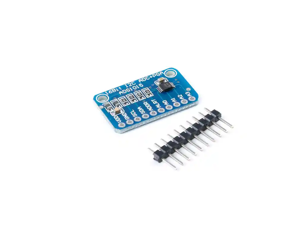 Para microcontroladores sin un convertidor de analógico a digital o cuando desee un ADC de mayor precisión, el ADS1015 proporciona una precisión de 12 bits a 3300 muestras / segundo sobre I2C. El chip se puede configurar como 4 canales de entrada de un solo extremo o dos canales diferenciales. Como una buena ventaja, incluso incluye un amplificador de ganancia programable, hasta x16, para ayudar a aumentar las señales individuales / diferenciales más pequeñas al rango completo. Nos gusta este ADC porque puede funcionar con potencia / lógica de 2V a 5V, puede medir una amplia gama de señales y es muy fácil de usar. Es un gran conversor de 12 bits de propósito general. El chip es bastante pequeño, por lo que viene en una placa de ruptura con ferritas para mantener silenciosos el AVDD y el AGND. La interfaz se realiza a través de I2C. La dirección se puede cambiar a una de las cuatro opciones (consulte la tabla 5 de la hoja de datos) para que pueda tener hasta 4 ADS1015 conectados en un solo bus I2C de 2 cables para 16 entradas de un solo extremo. Amplio rango de suministro: 2.0v a 5.5v Bajo consumo de corriente: modo continuo: solo 150 µa modo de disparo único: apagado automático Tasa de datos programables: 128sps a 3.3ksps Referencia interna de voltaje de baja derivación Oscilador interno Pga interno Interfaz i2c: direcciones seleccionables con pines Cuatro entradas simple o dos diferenciales Comparador programable Esta placa / chip utiliza direcciones i2c de 7 bits entre 0x48-0x4b, seleccionable con puentes LA COMPRA INCLUYE: 1x CONVERSOR ANALOGO DIGITAL ADS1015