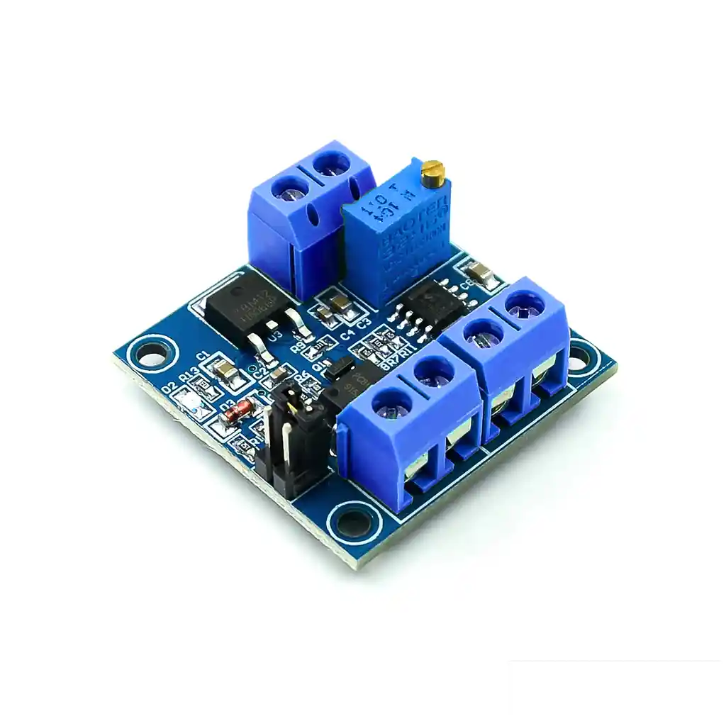 convertidor PWM a voltaje / modulo convertidor de voltaje de frecuencia 0% -100% a 0-10V / 0-10V a 0-10KHz modulo convertidor analogico Modulo de PWM a voltaje (Modulo convertidor de PWM a voltaje 0% -100% a 0-10V para PLC MCU Señal digital a analogica Modulo de potencia convertidor ajustable PWM) El modulo de voltaje de transferencia PWM LC-LM358-PWM2V convierte las señales digitales PWM en señales analogicas de 0 a 10 V. Se puede utilizar como conmutacion de interfaz de señal para PLC u otras placas de control industriales. El voltaje de salida se regula ajustando la relacion de trabajo del PWM. Los modulos son de tamaño pequeño y faciles de usar en diferentes lugares. 2. Caracteristicas: 1>. Tecnologia integrada MCU 2>. Facil de operar, afinado por potenciometro 3>. Seleccione el rango de nivel de entrada de la señal PWM a traves de cortocircuito 4>. El modulo es mas pequeño, facil de transportar y usar. 3. Parametro: 1>. Voltaje de trabajo: DC 12V-30V; (> 100 mA) 2>. Frecuencia del receptor PWM: 1 KHZ-3 KHZ 3>. Rango de nivel de entrada de señal PWM: El pico de nivel de 4.5V a 10V. La tapa corta se instala en 5V '. Este nivel se utiliza para controlador normal o MCU de 5 V El pico de nivel de 12V a 24V, por lo que se inserta en 24V. La tapa corta se instala en 24V '. Este nivel se utiliza para el controlador PLC normal 4>. Rango de conversion: 0% -100% PWM a 0-10V 5>. Error permitido: 5% 4. Interfaz de hardware: VCC DC 12V-30V GND GND PWM Positivo de la señal de entrada PWM GND Negativo de la señal de entrada VOUT Voltaje de salida 0-10 V GND Tierra de voltaje de salida 5. Instrucciones de funcionamiento: Despues de encender, sin señal de entrada, la salida es 0 V, por lo que solo la entrada puede salir. La primera vez que esta encendido, es mejor hacer una depuracion de calibracion: ingrese una señal de relacion de trabajo del 50% en PWM / GND y ajuste el limite corto de amplitud relativa. La frecuencia es 1KHZ-3KHZ, VOUT y GND medidos con un multimetro y mostrara 5V. Ajuste el potenciometro para asegurarse de mostrar 5,00 V en el multimetro. Esto calibrara su señal de pulso a este modulo. Cuando cambia la frecuencia, las correspondencias pueden estar desplazadas y deben volver a calibrarse. El voltaje de salida se puede ajustar ajustando la relacion de trabajo. La precision se puede controlar ajustando el potenciometro. Modulo de voltaje a frecuencia Convertidor de voltaje de frecuencia 0-1KHz a 0-10V Modulo de conversion de señal de voltaje digital a analogico Conversion de frecuencia a voltaje Descripcion general: El modulo de voltaje a frecuencia LM331_V2F es un modulo que puede generar diferentes frecuencias dependiendo del voltaje de entrada. Es capaz de convertir voltaje de 0-10 V en una señal de pulso de frecuencia de 0-10 KHz. Caracteristicas: 1. Voltaje de entrada, señal de frecuencia de salida. 2. La señal de salida se puede ajustar con precision y el potenciometro se puede ajustar para calibrar la correspondencia entre voltaje y frecuencia. 3. La salida de este modulo se puede suministrar al controlador para la señal de pulso. Debe estar conectado al controlador para la conexion del anodo comun. El cableado relevante es OC-OUT: PUL- o PUL12-30V conectado al controlador: PUL + o terminal comun + 5V conectado al controlador, (Cuando se alimenta 12V, es necesario encadenar una resistencia 330R. Cuando se alimenta 13-24V, es necesario encadenar una resistencia de 2.7K para limitar la corriente) Parametros tecnicos: Voltaje de trabajo: 13.5V-30V. Rango de voltaje controlable de entrada: 0-10 V. Rango de frecuencia de salida: 0-10 KHz. Instrucciones de cableado: VCC: Fuente de alimentacion en funcionamiento. GND: Tierra de potencia. IN +: Voltaje de entrada. IN-: Tierra de entrada. OCOUT: puerto de salida del colector de señal (use este puerto de salida cuando este equipado con un controlador). FOUT: Puerto de salida de frecuencia (puerto de salida de frecuencia comun). Dos salidas independientes, OC-OUT es NPN y FREQ-OUT es salida IC. El extremo del catodo comun se corresponde con el GND negativo de la fuente de alimentacion. Cuando el cableado del anodo comun se utiliza con la fuente de alimentacion, cuando el cableado del anodo comun es de 13-24 V, es necesario colocar una resistencia de 2.7KR y el cableado del anodo comun es una fuente de alimentacion de 12V. Para encadenar una resistencia de 330R. Instrucciones: La señal de pulso de frecuencia esta conectada a F, y hay una salida de voltaje correspondiente en el terminal VOUT. Correspondencia de entrada y salida: 1V = 1KHz 10V = 10KHz Si hay una desviacion en la correspondencia al usar, puede ajustar el potenciometro en la placa para calibrar. LA COMPRA INCLUYE: 1 x CONVERSOR PWM A VOLTAJE 0% - 100% to 0-10V PLC PARA SPINDLE