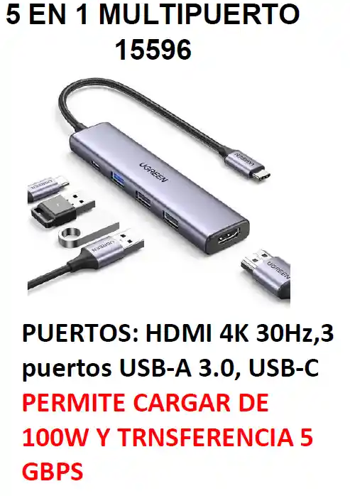 PUERTOS: HDMI 4K 30Hz,3 puertos USB-A 3.0, USB-C PERMITE CARGAR DE 100W Y TRNSFERENCIA 5 GBPS EXPOTECNOLOGIA 3505945136