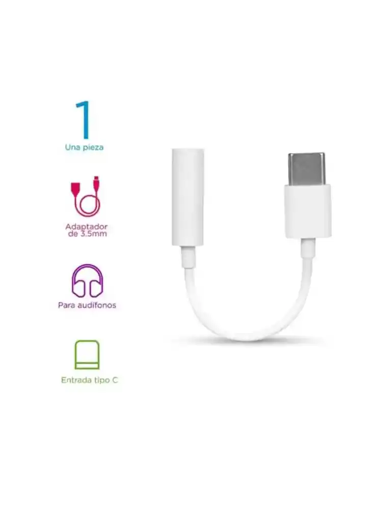 Convertidor adaptador Tipo C a jack auxiliar 3.5 mm, permite conectar audífonos con entrada 3.5 mm a dispositivos con puerto USB-C, sonido estéreo de alta calidad, chip DAC integrado para mejor audio, diseño compacto y portátil, material resistente y duradero, conexión estable sin interferencias, fácil de usar sin instalación, plug and play, ideal para música y llamadas, compatible con audífonos, parlantes y equipos con entrada 3.5 mm, compatible con celulares Android con puerto USB-C, Samsung, Xiaomi, Huawei, Motorola, compatible con tablets y laptops con puerto Tipo C, soporta dispositivos sin entrada de audífonos, no requiere batería externa