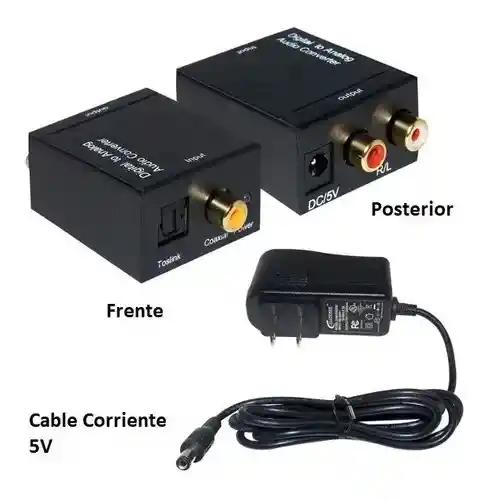 Disfruta de este convertidor de audio digital a análogo que te permitirá conectar tus dispositivos con salida S/PDIF o coaxial (TV, Consolas de juegos, Blu-Ray entre otros) a tus dispositivos con entrada RCA blanco, rojo (equipos de sonido, amplificadores, audífonos) para reproducir el audio en ellos. Ejemplo: Podrás conectar tu TV HD a tu equipo de sonido para reproducir el audio del tv en el equipo de sonido. Además de ser muy funcional también tiene un tamaño ideal para instalación fija o portable; Debe ser instalado con alimentación de energía externa (consumo muy bajo DC 5V@1A). Características: - Fácil uso, no necesita configuraciones. - 1 Entrada S/PDIF o audio digital. - 1 Entrada Coaxial. - 1 Salida RCA Roja, 1 Salida RCA Blanca. - Adaptador de corriente DC 5V – 2A. La caja contiene: - Convertidor de audio digital a análogo. - Adaptador de corriente DC 5V@2A. - Manual de instrucciones en inglés.