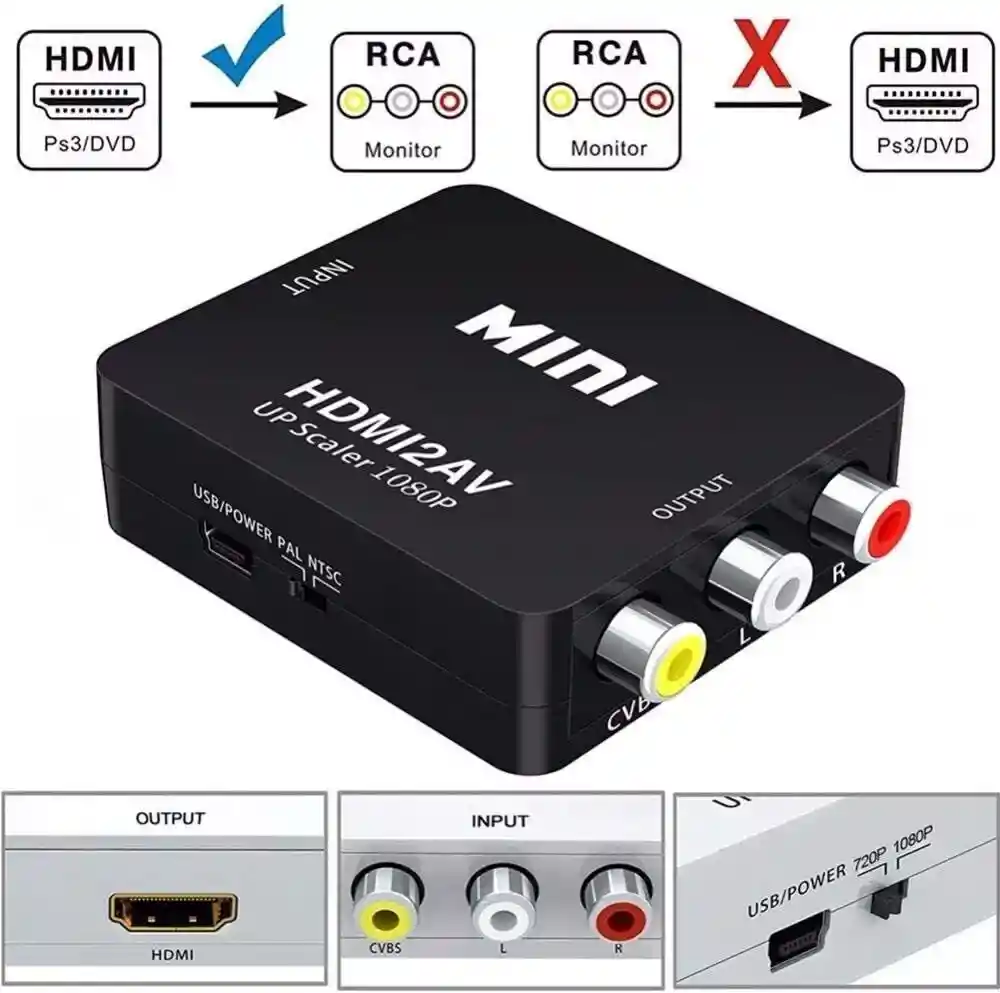 Convierte la señal digital HDMI en señal analógica RCA (AV) para conectar dispositivos modernos como laptops, consolas o reproductores a televisores antiguos, proyectores o monitores sin entrada HDMI. Ideal para aprovechar equipos clásicos sin perder calidad de imagen ni sonido