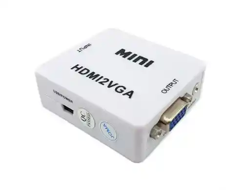 DESCRIPCIÓN: El convertidor HDMI a VGA es un convertidor universal que convierte la señal de vídeo de salida hdmi 1080p( 60hz) a salida VGA. Permite conectar Monitor, TV, Video Beam, con entrada VGA. Sin driver de instalación no es necesario. - Este es un convertidor de HDMI a VGA, es decir para conectar por ejemplo un computador o consola con salida hdmi a un monitor o pantalla con entrada vga, es decir solo le va a funcionar si el equipo que recibe la imagen (monitor, pantalla) tiene entrada vga. - Si lo va a conectar a un monitor o pantalla con entrada hdmi por favor busque en nuestras publicaciones el convertidor correcto. - El cable mini usb NO funciona como convertidor usb. -El cable mini usb es para conectarlo directamente a la corriente con un adaptador preferiblemente de 1 amperio 5 voltios o también lo puede alimentar de energía conectándolo a un puerto usb del equipo con el que lo va a utilizar. > ESPECIFICACIONES TÉCNICAS: • Dimensiones: 60.5*55*20mm (L * W * H) • Puerto de entrada: HDMI Tipo A • Puerto de salida: 1 VGA • Entrada HDMI: Max 1080 P 60Hz • Salida VGA: 1080 P/60Hz, 720 p/60Hz EL EMPAQUE INCLUYE -1 Convertidor de HDMI a VGA -1 Cable mini USB de alimentación