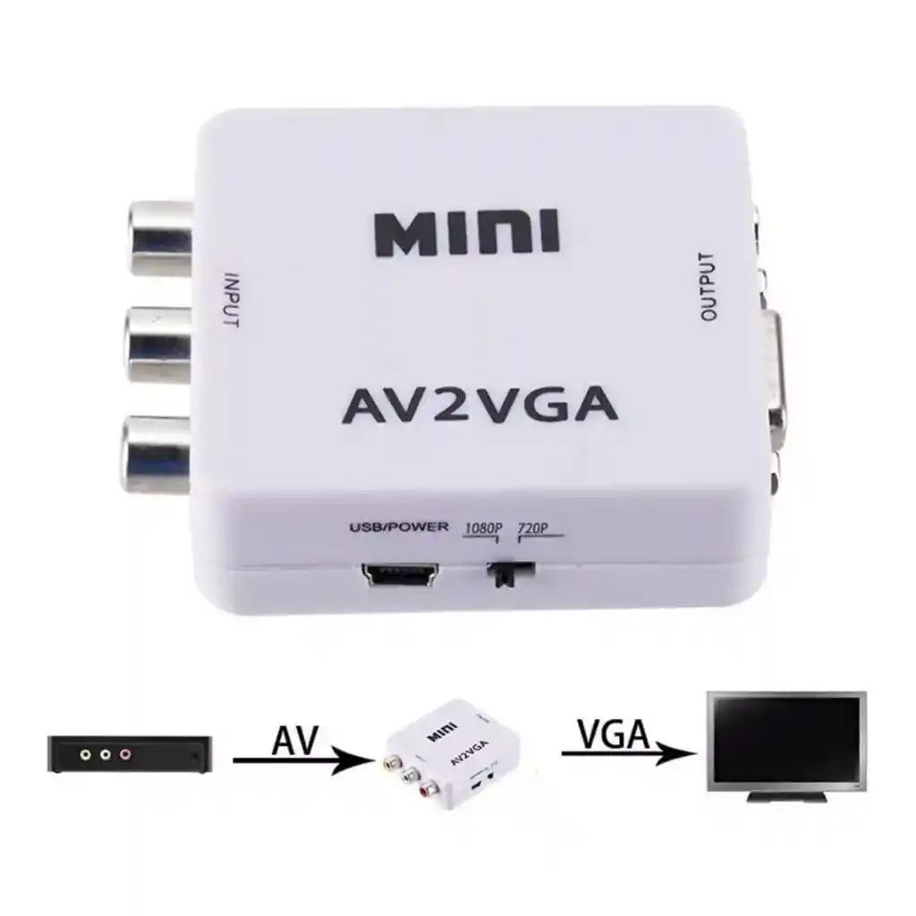 - Convertidor RCA a VGA video - Convertidor universal que convierte la señal de vídeo de entrada RCA a salida VGA - Conexión plug play no requiere ningún controlador - Permite conectar dispositivos con salida de RCA a TV u otros con entrada VGA - Fácil instalación y uso - Soporta NTSC y PAL (salidas estándar de TV) - Conecta el cable de alimentación USB al enchufe de alimentación de 5V antes de usar ESPECIFICACIONES TÉCNICAS: • Puerto de entrada: 1 RCA ( amarillo / blanco / rojo ) • Puerto de salida: VGA
