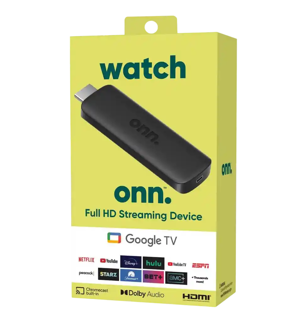 en casa con el dispositivo de streaming Google TV Full HD de Onn. Disfruta de tus canales digitales favoritos y accede a una amplia variedad de contenido con solo un clic. Características Principales: Resolución Full HD: Sumérgete en una calidad de imagen nítida y clara. Chromecast Integrado: Transmite fácilmente tus fotos, videos y música desde tus dispositivos móviles directamente a tu TV. Control por Voz con Google Assistant: Controla tu televisor con comandos de voz sencillos. Solo tienes que pedirle a Google que busque tu programa favorito o ajuste el volumen. Acceso a Múltiples Plataformas: Accede a tus películas y programas de televisión favoritos desde plataformas como Netflix, Google TV, Disney+, MAX y muchas más. Fácil Configuración: Configura tu dispositivo en minutos con nuestro intuitivo sistema plug-and-play. Conectividad Avanzada: Equipado con conector HDMI y Micro USB, y tecnología inalámbrica MIMO WiFi para una transmisión sin interrupciones. Características de Audio de Alta Calidad: Disfruta de sonido estéreo y mono para una experiencia auditiva envolvente. Memoria RAM de 1.5GB: Potente rendimiento para una navegación rápida y fluida. ¿Qué Incluye la Caja? 1 Dispositivo de Streaming Google TV Full HD de Onn 1 Guía de Inicio Rápido 1 Control Remoto 2 Pilas AAA 1 Cable HDMI 1 Adaptador de Corriente