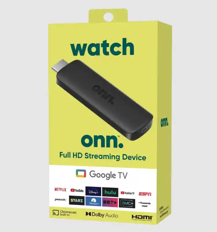 en casa con el dispositivo de streaming Google TV Full HD de Onn. Disfruta de tus canales digitales favoritos y accede a una amplia variedad de contenido con solo un clic. Características Principales: Resolución Full HD: Sumérgete en una calidad de imagen nítida y clara. Chromecast Integrado: Transmite fácilmente tus fotos, videos y música desde tus dispositivos móviles directamente a tu TV. Control por Voz con Google Assistant: Controla tu televisor con comandos de voz sencillos. Solo tienes que pedirle a Google que busque tu programa favorito o ajuste el volumen. Acceso a Múltiples Plataformas: Accede a tus películas y programas de televisión favoritos desde plataformas como Netflix, Google TV, Disney+, MAX y muchas más. Fácil Configuración: Configura tu dispositivo en minutos con nuestro intuitivo sistema plug-and-play. Conectividad Avanzada: Equipado con conector HDMI y Micro USB, y tecnología inalámbrica MIMO WiFi para una transmisión sin interrupciones. Características de Audio de Alta Calidad: Disfruta de sonido estéreo y mono para una experiencia auditiva envolvente. Memoria RAM de 1.5GB: Potente rendimiento para una navegación rápida y fluida. ¿Qué Incluye la Caja? 1 Dispositivo de Streaming Google TV Full HD de Onn 1 Guía de Inicio Rápido 1 Control Remoto 2 Pilas AAA 1 Cable HDMI 1 Adaptador de Corriente