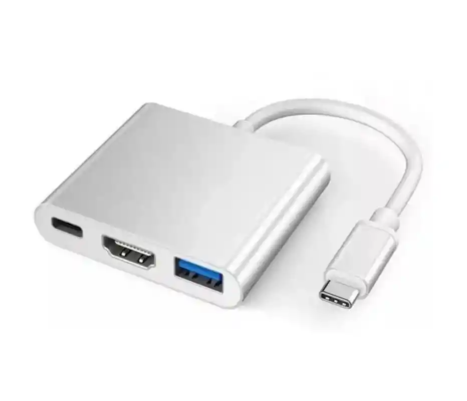 **Convertidor TipoC a USB + HDMI + TipoC -109** Convierte un solo puerto TipoC en múltiples opciones de conectividad con este práctico adaptador 3 en 1. Ideal para laptops, tablets o smartphones compatibles con salida de video TipoC, este convertidor te permite expandir tus posibilidades sin perder la carga del dispositivo. --- **Características:** * Entrada: TipoC macho * Salidas: • 1 puerto HDMI (hasta 4K) • 1 puerto USB 3.0 • 1 puerto TipoC (para carga o transferencia) * Compatible con sistemas operativos Windows, macOS, Android * Plug and Play, sin necesidad de controladores * Material resistente, diseño compacto y ligero * Ideal para trabajo, estudio o entretenimiento Perfecto para conectar tu dispositivo a monitores, televisores, teclados o memorias mientras mantienes la carga.