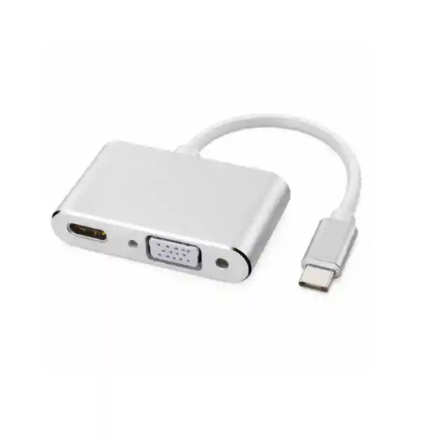 El Convertidor Tipo C a HDMI y VGA TGY127 es un adaptador multipuerto diseñado para ampliar la conectividad de equipos con puerto USB Tipo C. Permite conectar simultáneamente pantallas externas mediante HDMI y VGA, ideal para presentaciones, trabajo multitarea o duplicación de pantalla. Su diseño práctico y reversible facilita la conexión rápida, mientras que su compatibilidad con salida dual lo convierte en una solución eficiente para entornos profesionales y educativos. 🔹 CARACTERÍSTICAS Adaptador USB Tipo C a HDMI y VGA Salida HDMI y VGA simultánea Compatible con salida de audio Soporte para dos dispositivos de visualización Resolución máxima hasta 1920 × 1080 a 60 Hz Conector Tipo C reversible, fácil de usar Diseño compacto y portátil Ideal para computadores y dispositivos con puerto Tipo C