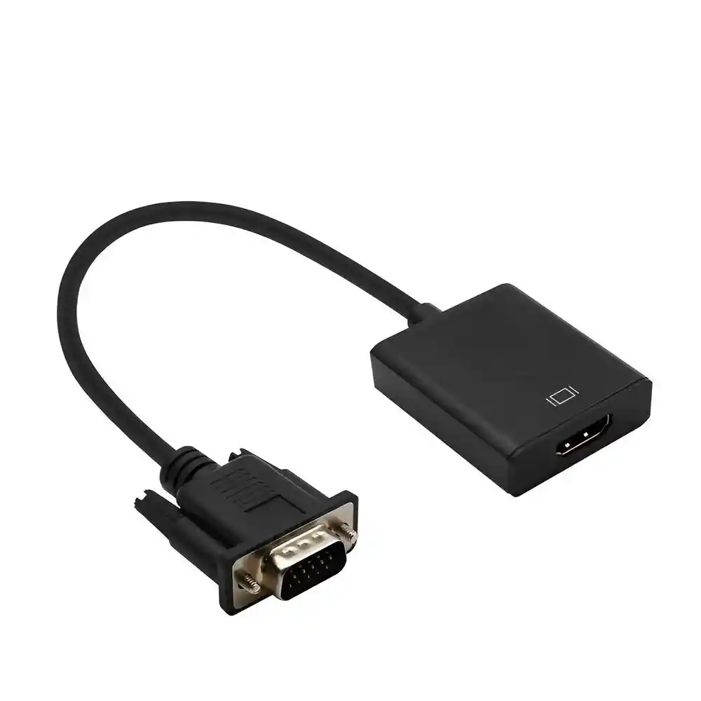 Convertidor VGA a HDMI con Audio Digital Full HD 1080P -Este conversor de VGA a HDMI es unidireccional, es decir, solo convierte la señal VGA en señal HDMI y no a la inversa. Sincronizado Audio y Video Con el chipset integrado, convertir el vídeo VGA y de audio USB, señal analógica a señal digital HDMI. Ahora puede disfrutar de audio y vídeo al mismo tiempo más de una televisión de alta definición por cable con pantalla grande. 2-en-1 USB El puerto USB puede no sólo la salida de audio del dispositivo de origen, sino también ofrecer alimentación al adaptador de VGA a HDMI al mismo tiempo. A través del puerto USB, puede proporcionar simultáneamente el poder y la salida de audio. No se necesita fuente de alimentación adicional. Soporte 1080P Soporte señal digital HDMI con resoluciones de hasta 1080p y 1600x1200. Puede disfrutar de audio de alta definición y vídeo en pantalla grande. Especificaciones 1. Entrada:VGA (vídeo) y USB (audio y carga); 2. Salida: HDMI (audio y vídeo); 3. Con chipset integrado, convierte la señal de vídeo VGA y de audio USB 2CH en una señal HDMI; 4. Entrada de VGA: 1920 x 1080 a 60 Hz; 5. Salida de HDMI: hasta 1080p a 60 Hz; 6. Soporta 8 bits por píxel / canal (en total, 24 bits por píxel); 7. El longtiud de cable tiene 50CM; Instalación: Fácil instalación, no necesita drivers, plug and play.