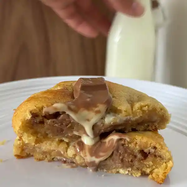New York Cookie a base de Chocolate Kinder con Relleno de Chocolatina Kinder, Crujiente por fuera y melcochuda por dentro
