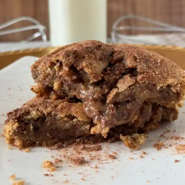 New York Cookie a base de galleta Milo con Relleno de Nutella, Crujiente por fuera y melcochuda por dentro