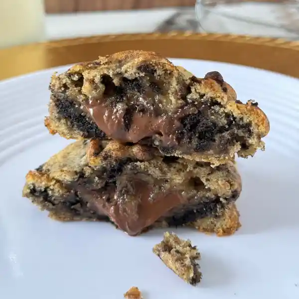 New York Cookie a base de galleta Oreo con Relleno de Nutella, Crujiente por fuera y melcochuda por dentro
