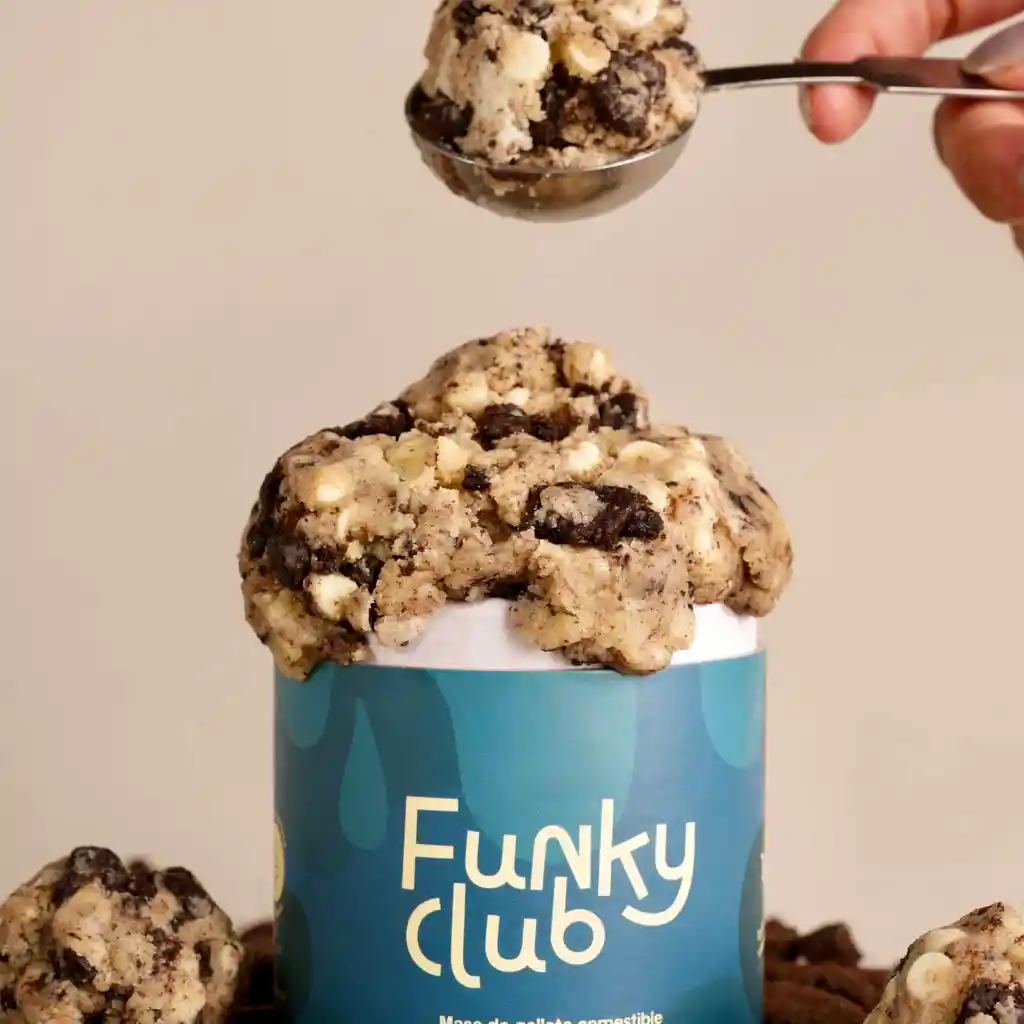 Masa de galletas comestible con topping de galleta oreo y chips de chocolate blanco