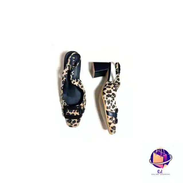 Zapato con estampado de leopardo en textura tipo gamuza. Incluye una hebilla negra azabache con incrustaciones, perfecta para quienes buscan un accesorio protagonista. Tallaje disponible 38-39 Tacon 5 1/2