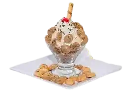 Dos sabores de helado, con una base crema de leche, galletas mini chips y chantilly
