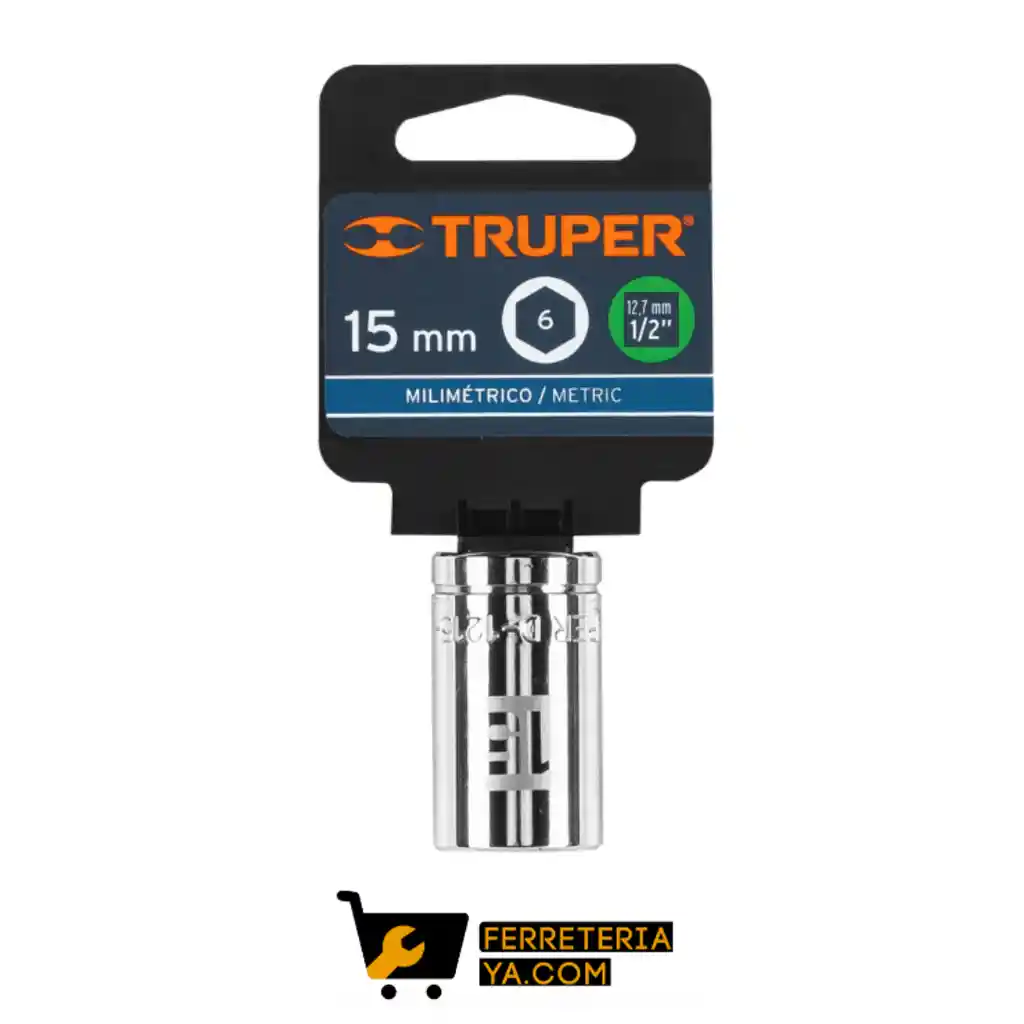 Fabricado en acero al cromo vanadio con acabado pulido espejo resistente a la oxidación y de fácil limpieza Sistema de sujeción Truper-Drive con puntas convexas que aseguran y aumentan el torque sin dañar tuercas ni cabezas de tornillos Medida marcada para fácil identificación Boca biselada para acoplamientos rápidos