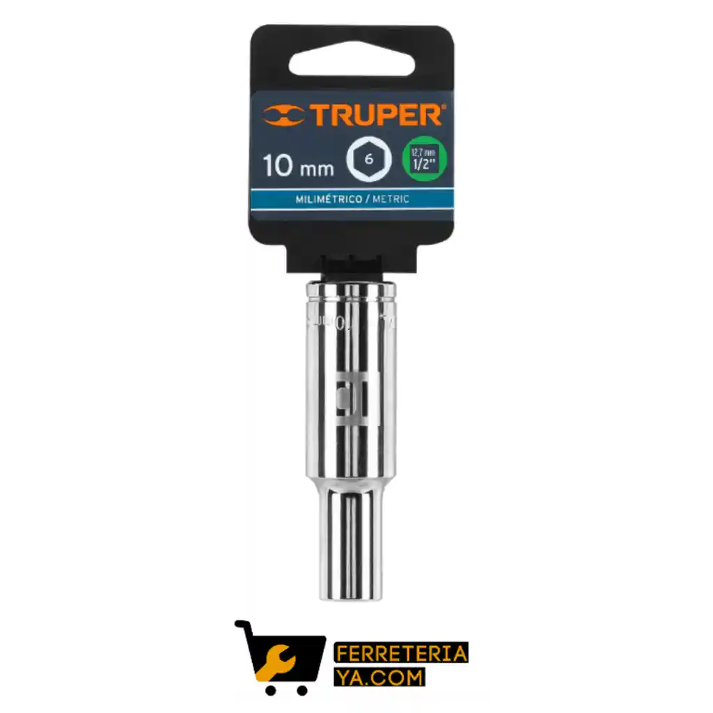 Fabricado en acero al cromo vanadio con acabado pulido espejo resistente a la oxidación y de fácil limpieza Sistema de sujeción Truper-Drive con puntas convexas que aseguran y aumentan el torque sin dañar tuercas ni cabezas de tornillos Medida marcada para fácil identificación Boca biselada para acoplamientos rápidos