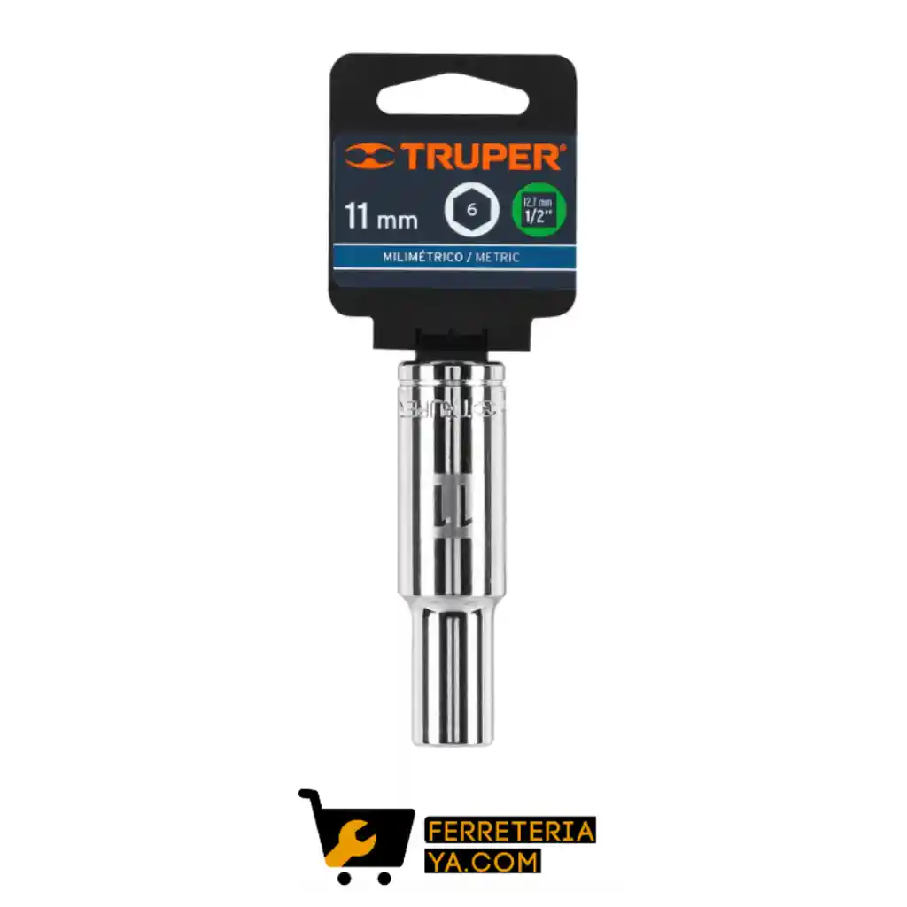 Fabricado en acero al cromo vanadio con acabado pulido espejo resistente a la oxidación y de fácil limpieza Sistema de sujeción Truper-Drive con puntas convexas que aseguran y aumentan el torque sin dañar tuercas ni cabezas de tornillos Medida marcada para fácil identificación Boca biselada para acoplamientos rápidos