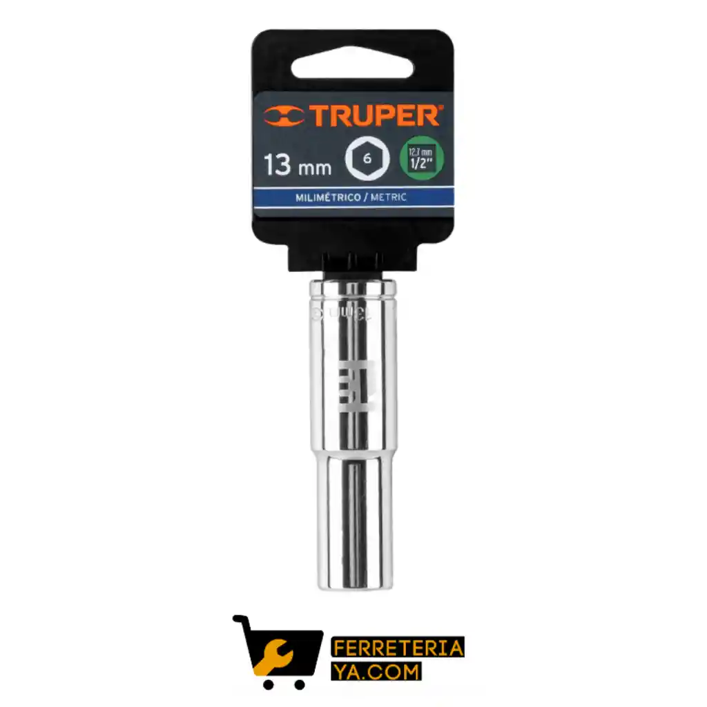 Fabricado en acero al cromo vanadio con acabado pulido espejo resistente a la oxidación y de fácil limpieza Sistema de sujeción Truper-Drive con puntas convexas que aseguran y aumentan el torque sin dañar tuercas ni cabezas de tornillos Medida marcada para fácil identificación Boca biselada para acoplamientos rápidos