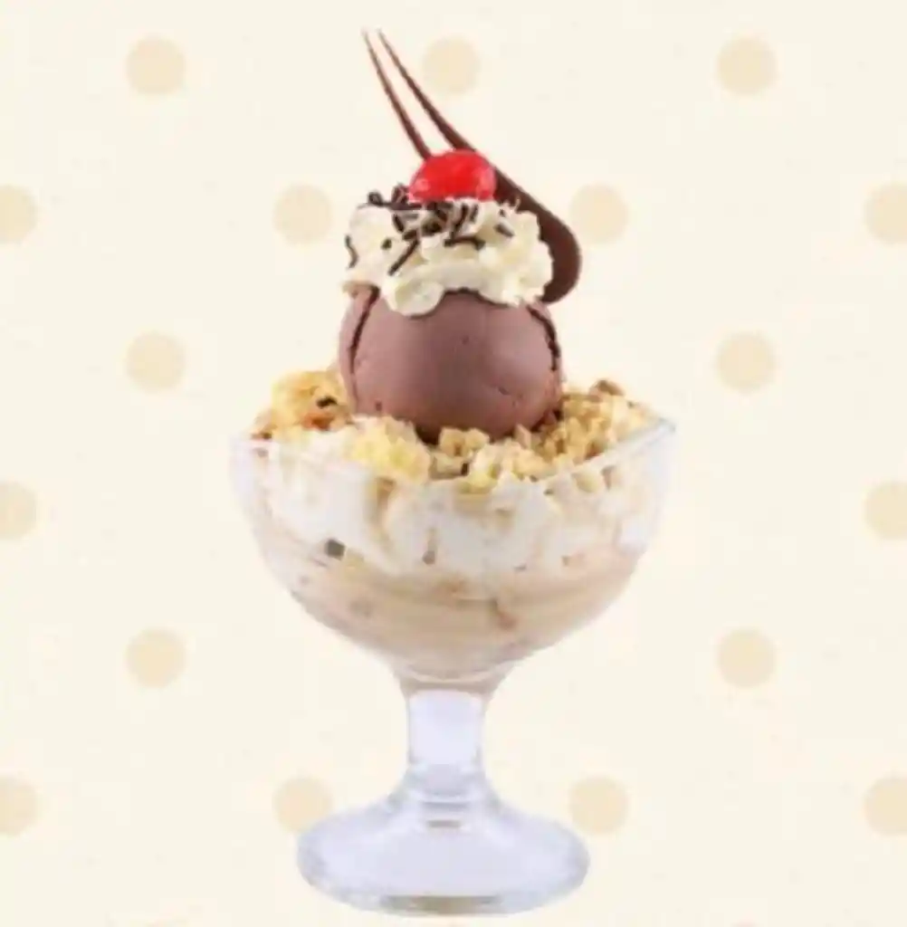 Dos sabores de helado, crema chantilly, esponjoso ponqué, bañados en crema de whisky.