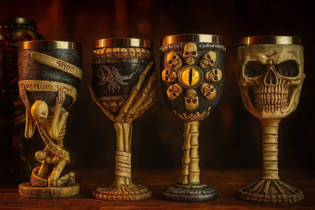 ✨🍷 Copas Decorativas de Colección 🍷✨ Dale un toque único y diferente a tu vitrina, bar o colección con estas espectaculares copas góticas decorativas 🖤💀. Diseñadas con detalles en calaveras, esqueletos y acabados realistas, ideales para los amantes de lo exclusivo, lo místico y lo coleccionable. ✅ Material resistente con interior en acero inoxidable 🥂 ✅ Diseños únicos y llamativos 🎨 ✅ Perfectas para regalar o decorar 🕯️ 🔥 ¡Un producto que atrapará todas las miradas y dará un estilo inigualable a tu colección!