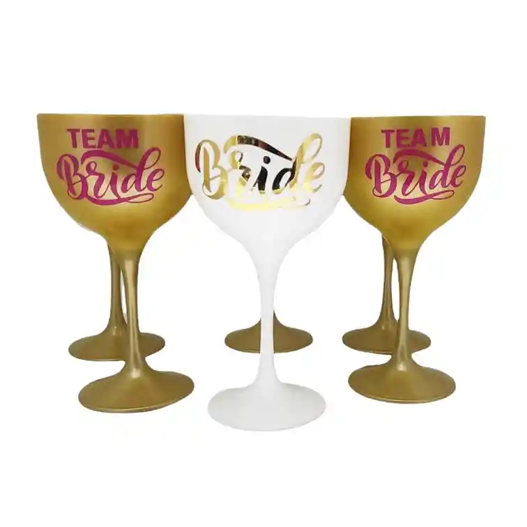 Copas para despedida de soltera así: 1 copa para novia Blanca BRIDE 5 copas para amigas Dorada TEAM BRIDE Si necesitas mas unidades solo contáctanos y nosotros armamos tu paquete. lo importante es que pasen un momento maravilloso e inolvidable. Solteras. Disponibilidad inmediata.