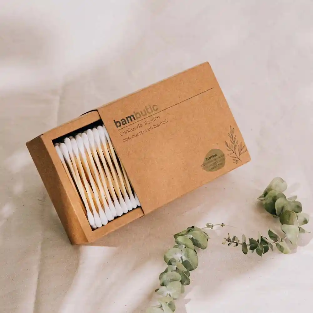 Copitos ideales para la limpieza personal. usar solamente de manera superficial... cada caja contiene 200 copitos de algodón orgánico y bambú.Estos copitos no contienen plástico. Los copitos en plástico se demoran más de 200 años en biodegradarse!