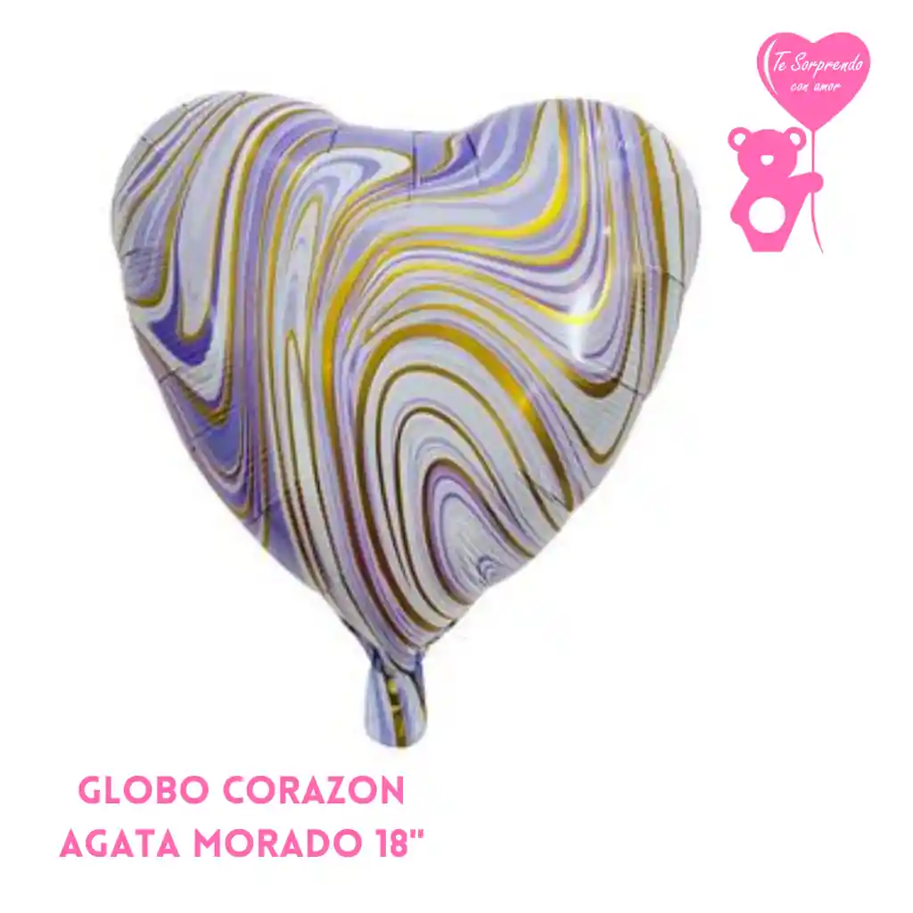 ESTE GLOBO NO VA INFLADO. GLOBO FOIL METALIZADO CORAZON AGATA MORADO DE 18" SE PUEDE INFLAR CON AIRE NORMAL O HELIO