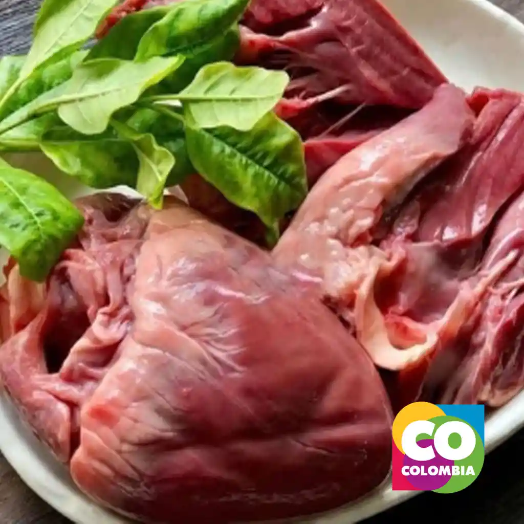 El corazón de carne es una víscera muscular de textura firme y compacta, caracterizada por su color rojo oscuro intenso y su bajo contenido de grasa. Al ser un músculo muy trabajado, tiene una consistencia más densa que otros cortes, pero bien preparado resulta jugoso y de sabor fuerte y ligeramente mineral. Es rico en proteínas, hierro y vitaminas del complejo B, lo que lo convierte en un alimento nutritivo y energético. Antes de su preparación, se recomienda limpiarlo retirando grasa externa, venas y coágulos internos. Se puede consumir asado a la parrilla, en brochetas, guisado, a la plancha o en estofados. Es muy utilizado en preparaciones tradicionales como anticuchos, fritos y platos típicos de cocina popular.