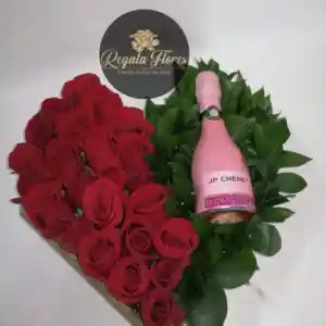 1 Paquete de rosas Media botella de jp chenet Follajes y complementos NOTA: Los materiales están sujetos a disponibilidad