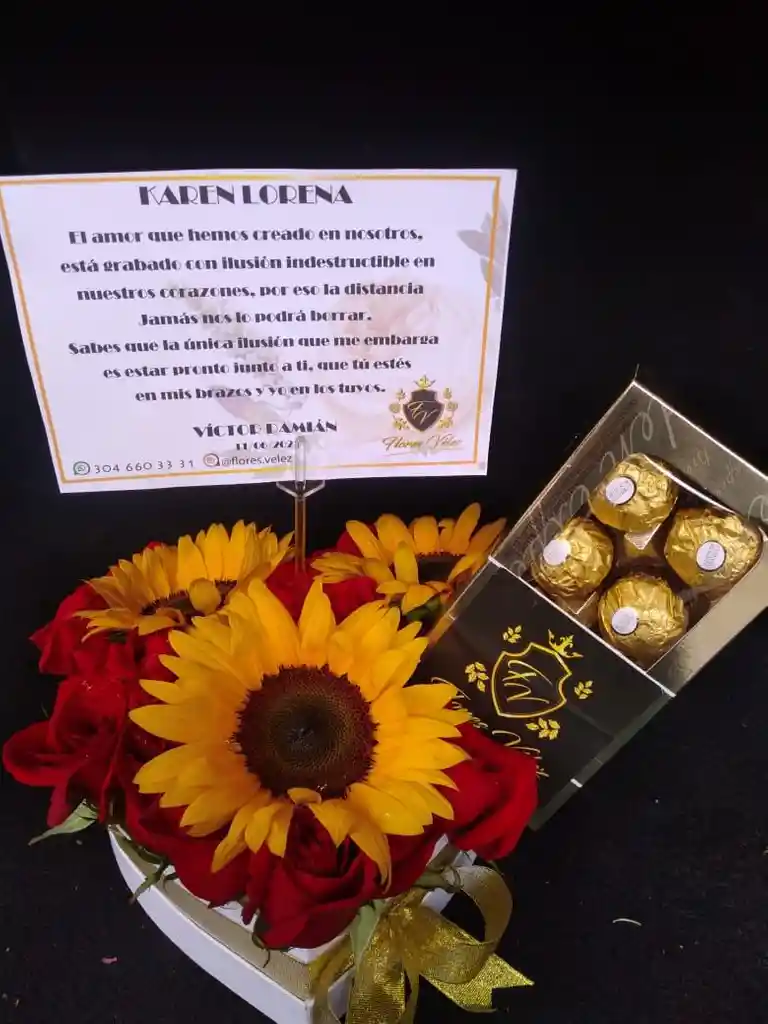Corazón con rosas, girasoles y ferrero de color Multicolor ideal para el Felicitaciones