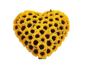 Buchon de 50 girasoles en forma de corazon