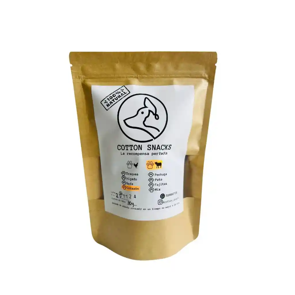Un snacks rico en proteina, y bajo en grasa especial para entretener a tu mascota y entrenarla. recuerda que nuestros productos son 100 % naturales, sin ningun aditivo.