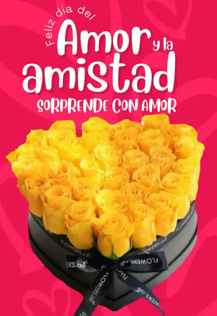 CORAZON CON 35 ROSAS AMARILLAS CAJA DE CORAZON NEGRA SINTA , MENSAJE PERSONALIZADO COMUNICATE CON NOSOTROS PARA EL MENSAJE