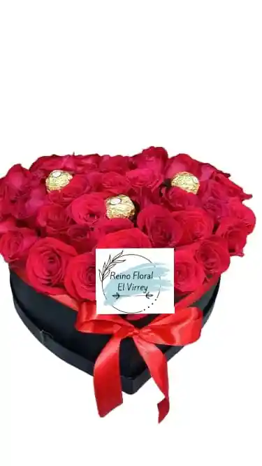 24 ROSAS ROJAS CAJA DE CORAZON 3 CHOCOLATES MOÑO Y TARJETA