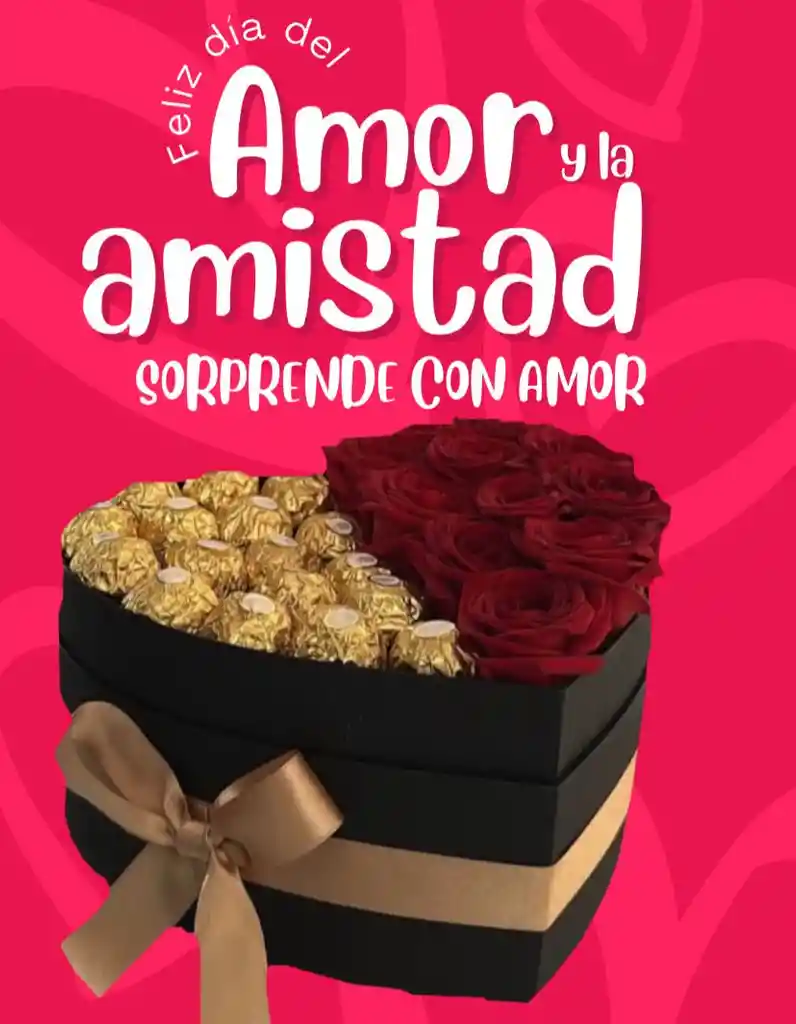 CORAZON CON ROSAS ROJAS CHOCOLATES FERRERO ROCHER CAJA NEGRA SINTA DECORATIVA ,MENSAJE PERSONALIZADO COMUNICATE CON NOSOTROS PARA EL MENSAJE