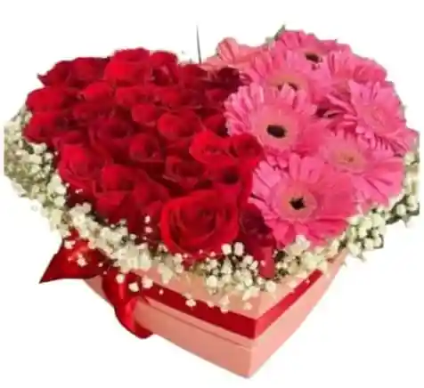 hermosa caja de corazón mediano de rosas y gerberas incluye tarjetas