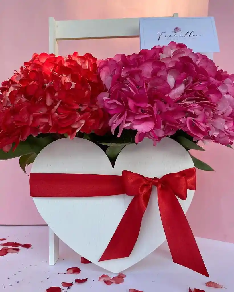 Caja en madera, contiene 4 hortensias tipo exportación en colores surtidos sujeto a disponobilidad.